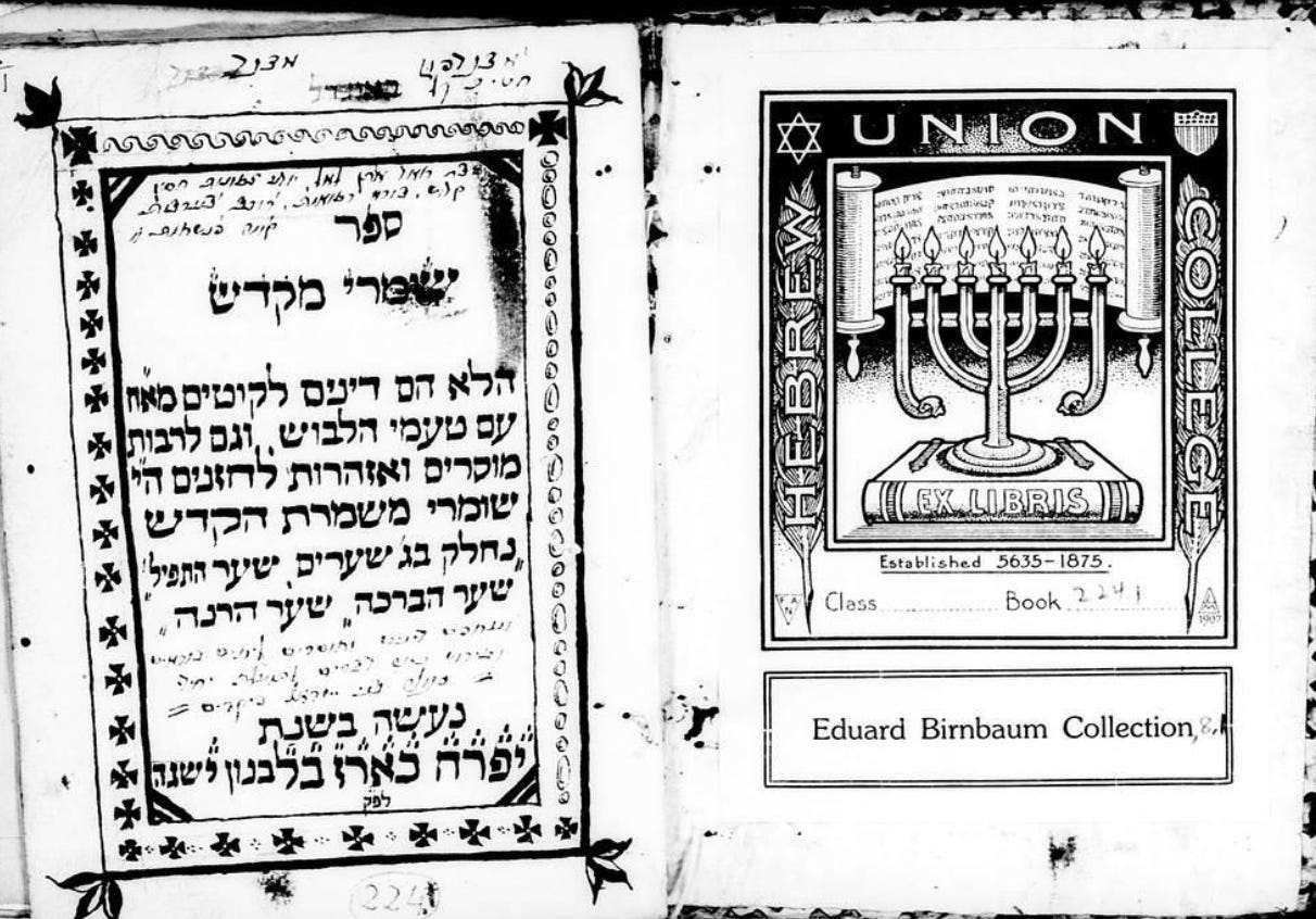 I discovered this book in my doctoral research while surveying early modern ethical literature about cantors. It apparently was well-regarded in its time, identified as the principal source for a later publication, Azharot LeHazzanim (Ferrara, 1832) and was also published in a “Reader’s Digest” version. The first evidence I found of this was a reprint of Azharot LeHazzanim from a Yiddish cantorial journal reprinted by Akiva Zimmerman in his cantorial history book BeRon Yahad: From the World of the Cantorate and Jewish Music (Tel Aviv, 1988). Although his version claimed to be reporduced from a copy in the now-recovered Strashun library in Vilna, other copies have resurfaced, including these manuscripts of the book’s primary source, Sefer Shomrei Mikdash (HUC MS. 224(1), whose essential teachings were summarized in the Azharot.